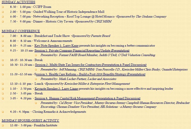 1. CONFERENCE REGISTRATIONS ARE SOLD OUT ! Please contact Dina O'Rourke at 908-763-5851 if you have any questions.